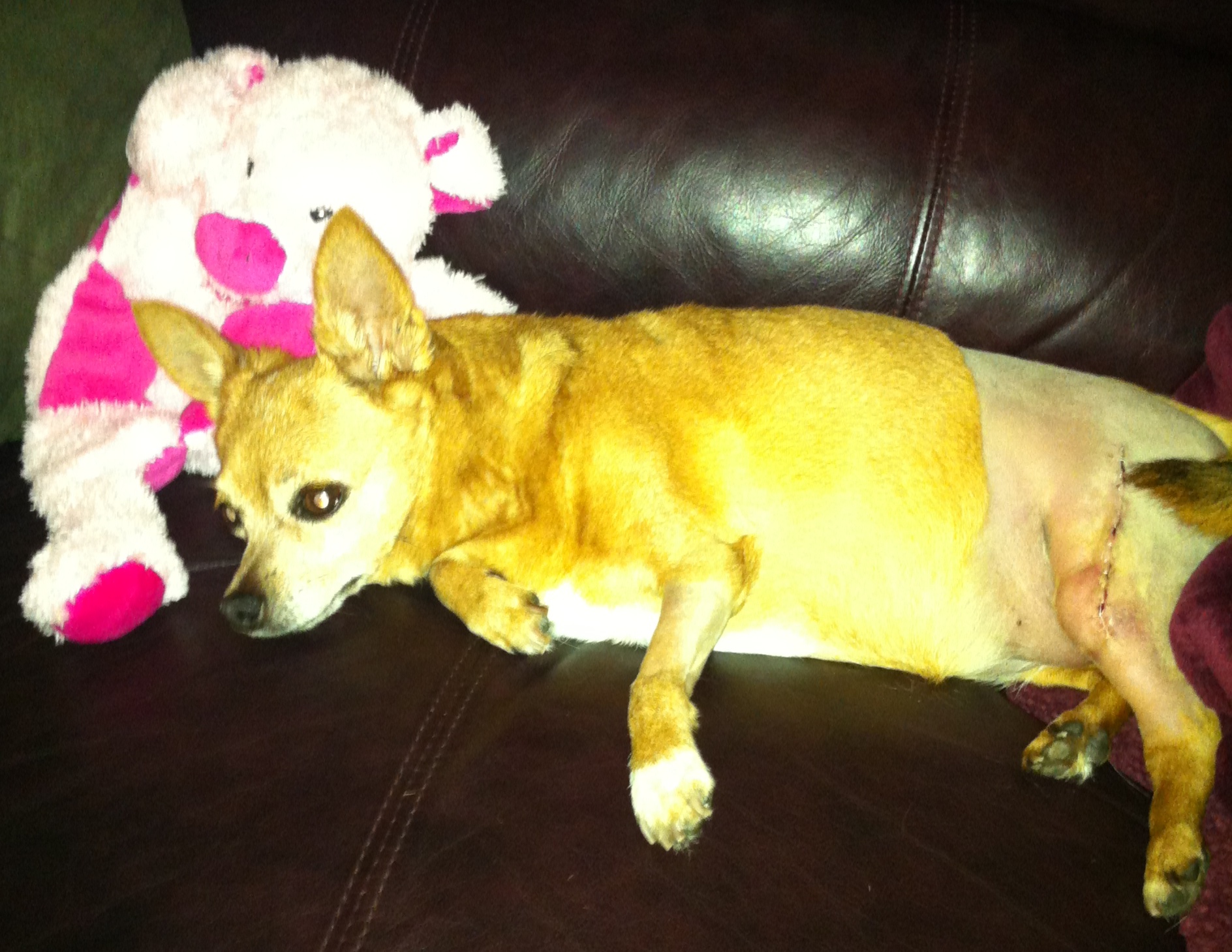 Nearly two weeks ago, the morning before the Tour de Jalapeno, my dog Queequeg went tearing out the door at 4:15 am after some small animal that’d been lurking in our backyard for weeks. She came back on 3 legs, dragging one behind her.